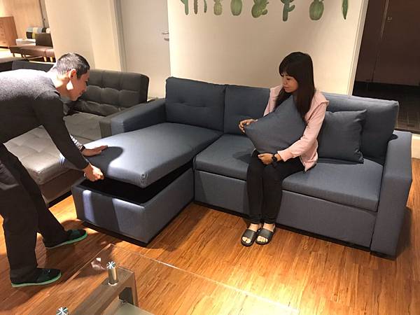有了這種款式沙發床,平常在客廳使用當成L型沙發,
